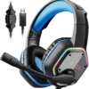 EKSA E1000 USB Gaming Headset for PC – Computer Headphones with Microphone/Mic Noise Cancelling, 7.1 Surround Sound Wired Headset&RGB Light – Gaming Headphones for PS4/PS5 Console Laptop